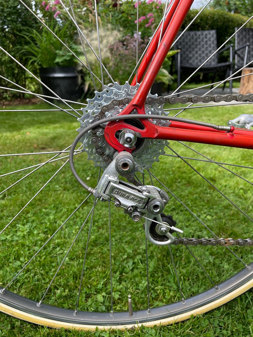 Ferdigstilt Raleigh med ny seksdelt frikrans fra SunTour (14-28), oppgradert fra femdelt Regina som jeg ikke fikk løsnet. Med andre ord også nytt bakhjul. La… Les mer »Litt småplukk